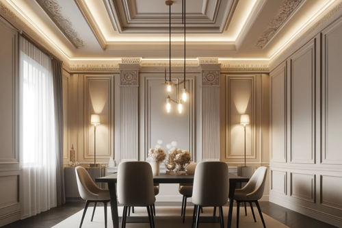 Modern gestaltete Wohnräume mit hochwertigem Stuck