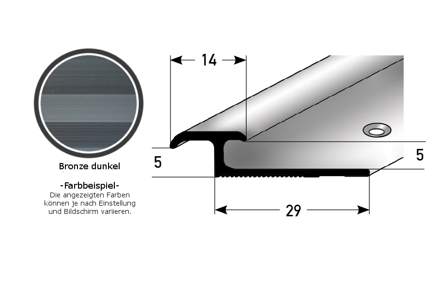 - GRÖSSE: Das Abschlussprofil mit den Abmessungen 29 x 5 x 2700 x 5 mm hat eine Einfassung von 5 mm.