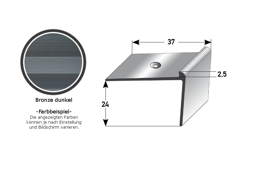 - GRÖSSE: Das Winkelprofil mit den Abmessungen 37 x 24 x 2700 mm hat eine Einfasshöhe von 2.5 mm und schafft einen sauberen Abschluss an der Treppenkante.