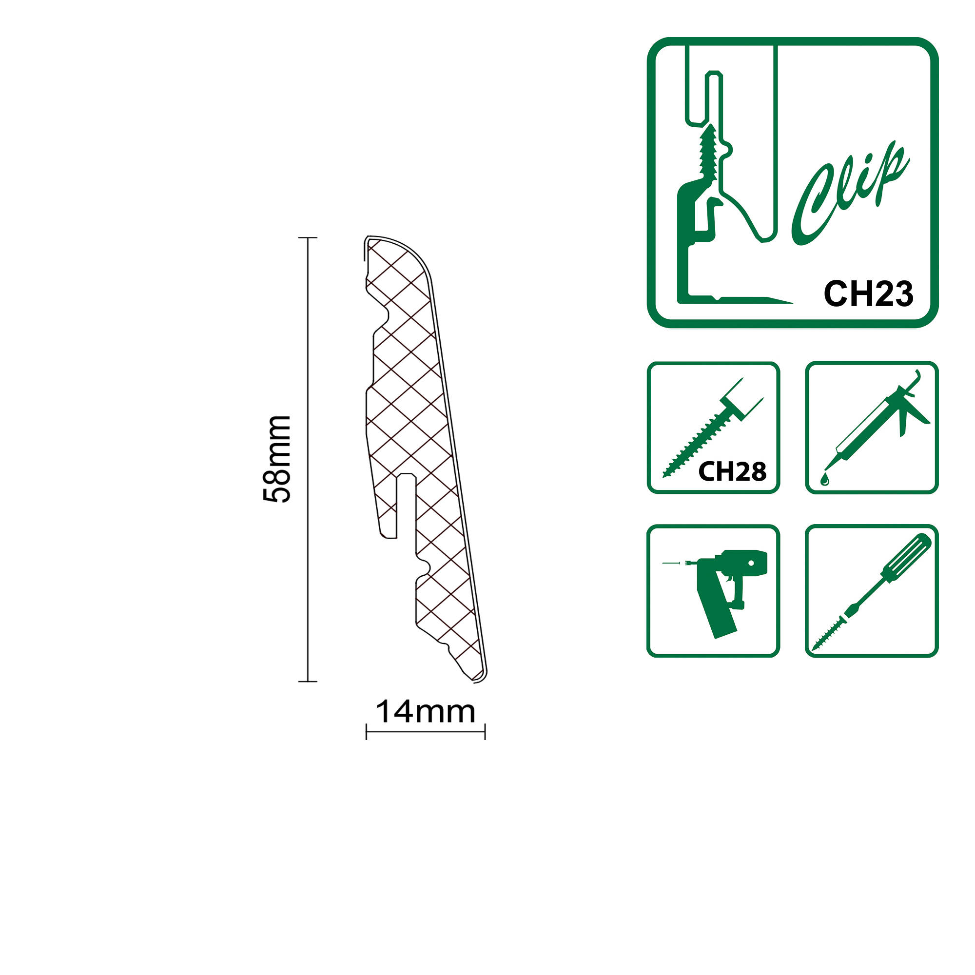 - GRÖSSE: 14 x 58 x 2400 mm. Das Format unterstützt einen sauberen und passgenauen Abschluss.