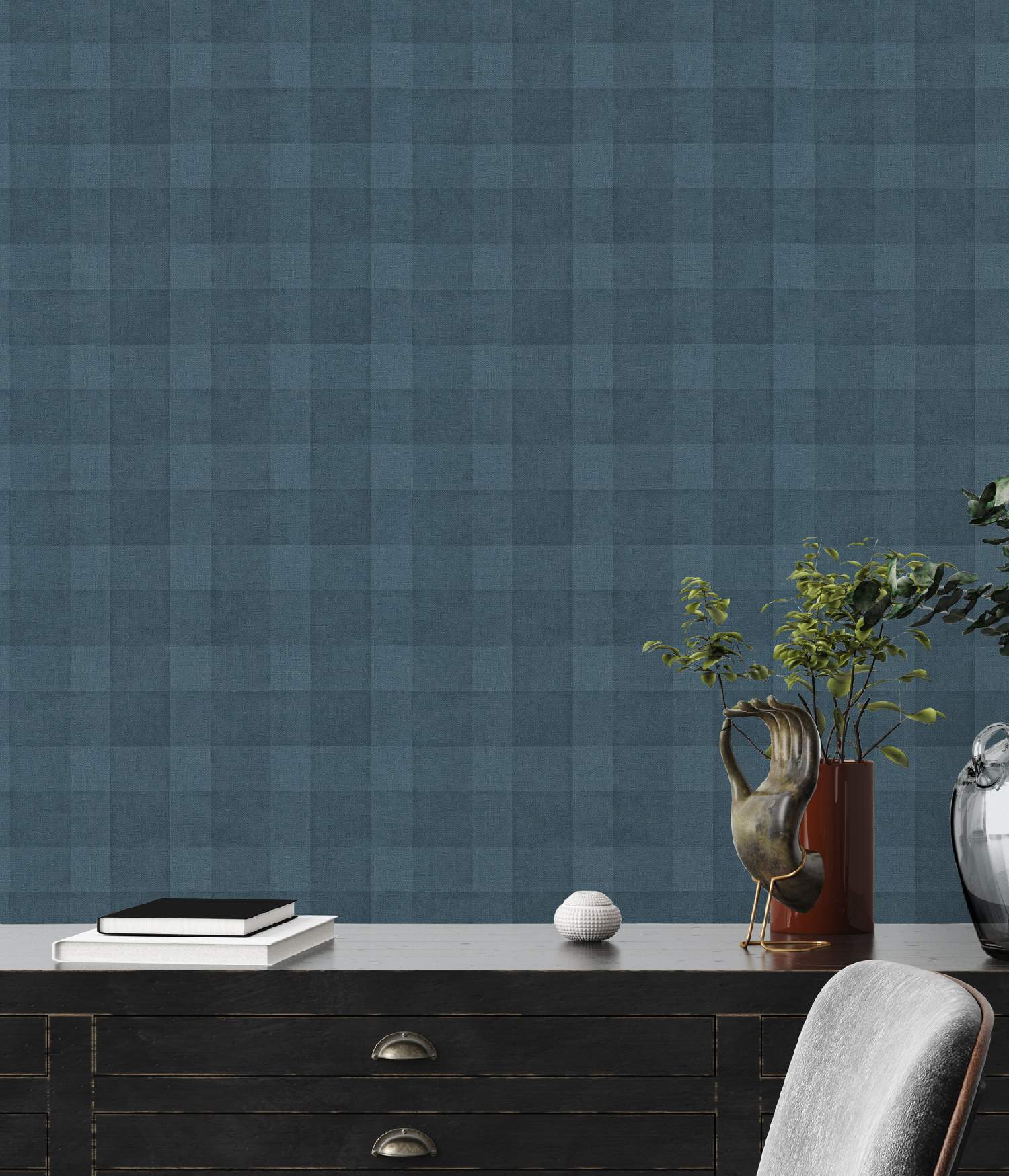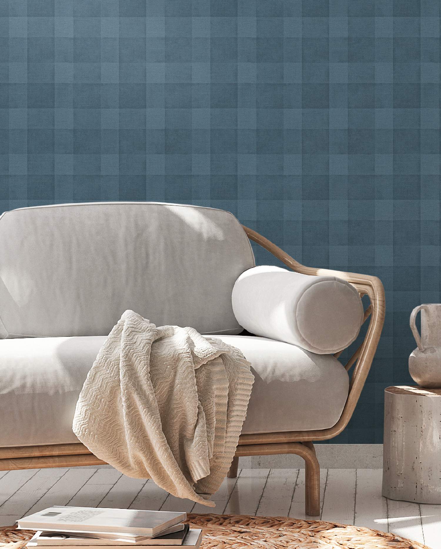 - Farbe der Tapete: Blau