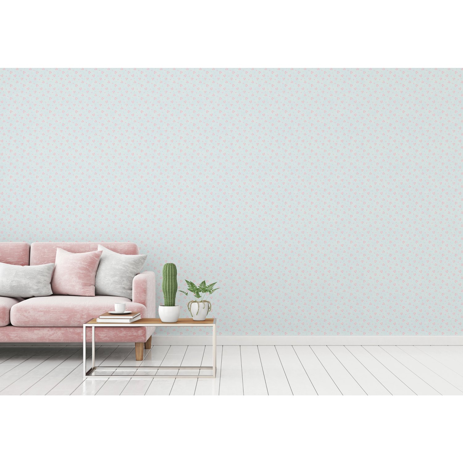 - Farbe der Tapete: Blau, Rosa, Weiß