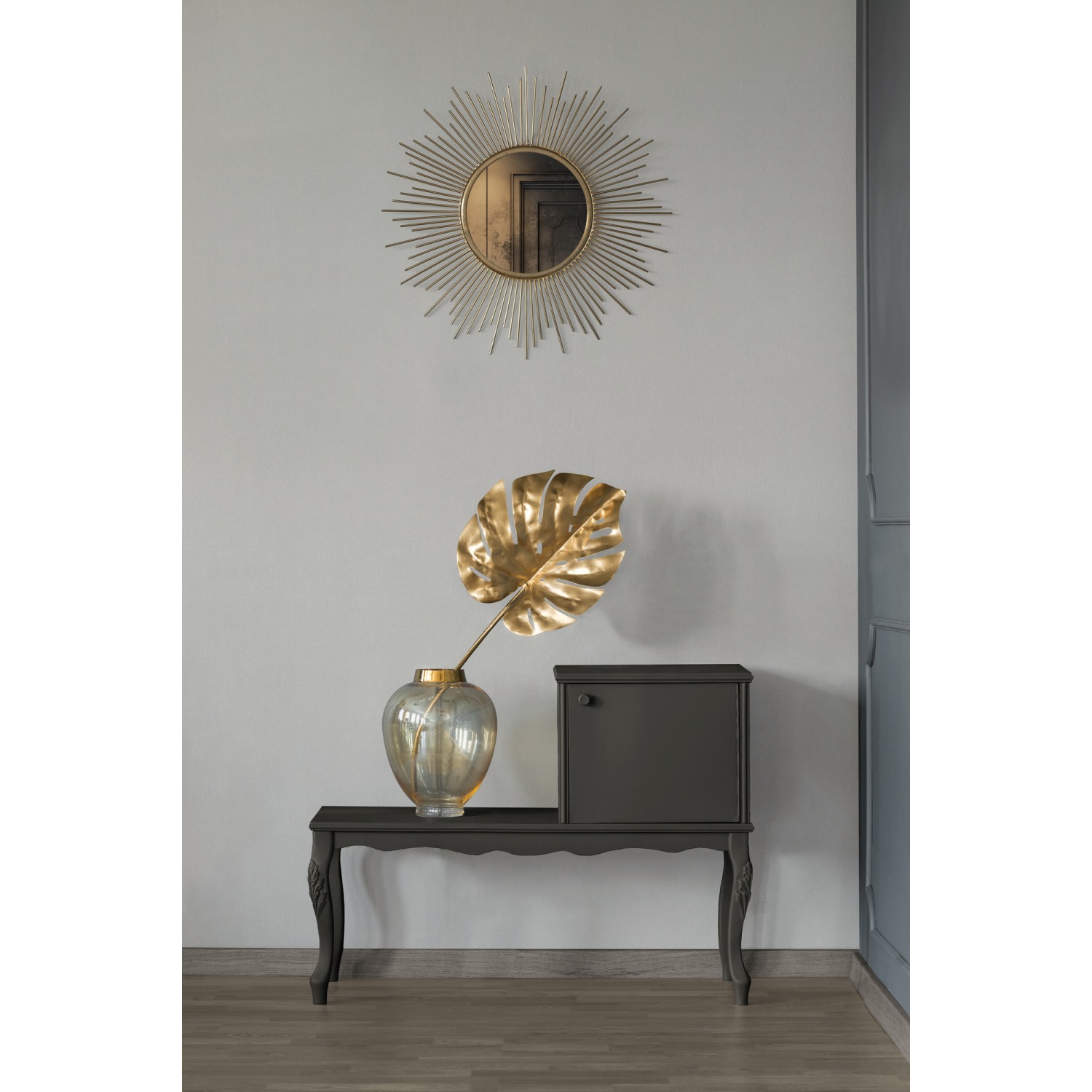 - Farbe der Tapete: Grau