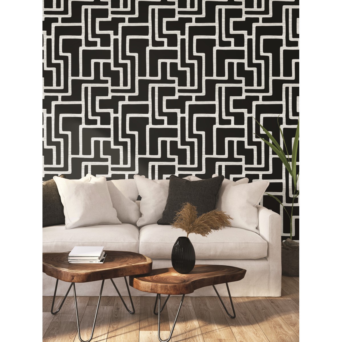 York Wallcoverings | Black and White | BW3831 | Sure Strip tapete | Geometrisch | 0.52 x 10 m