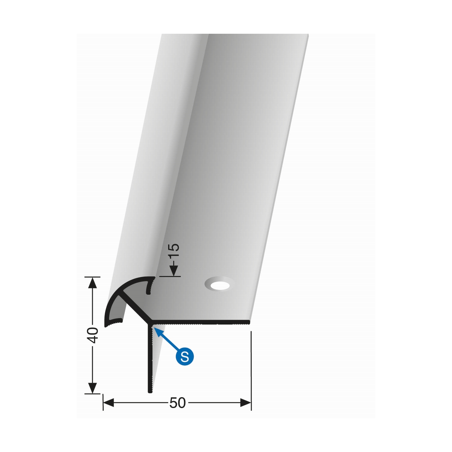 Treppenkantenprofil 40 x 50 x 2500 mm Aluminium Winkelprofil Glatt Versenkt Gebohrt Küberit